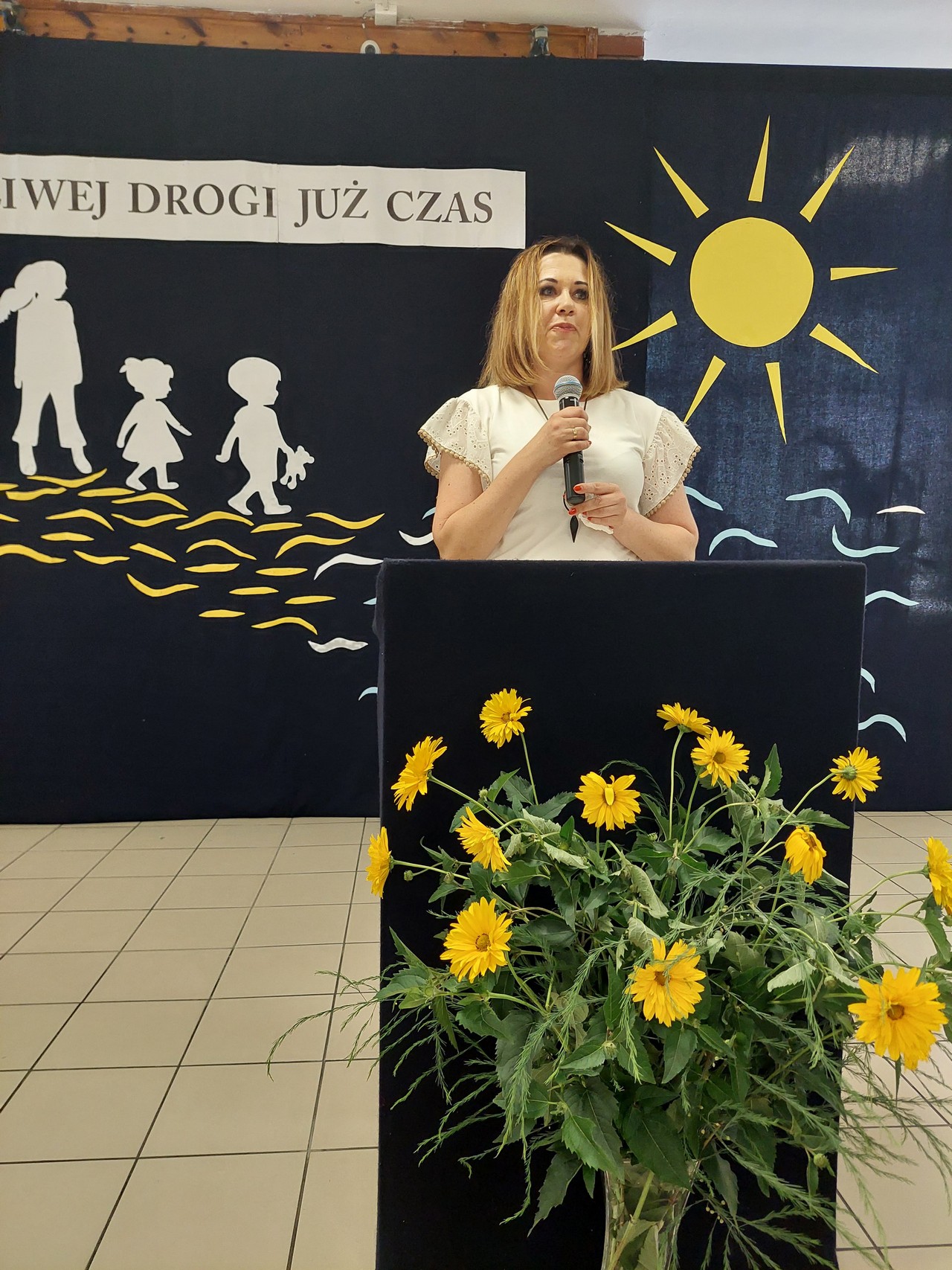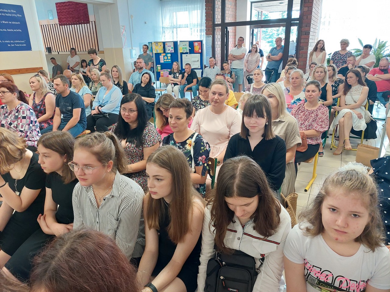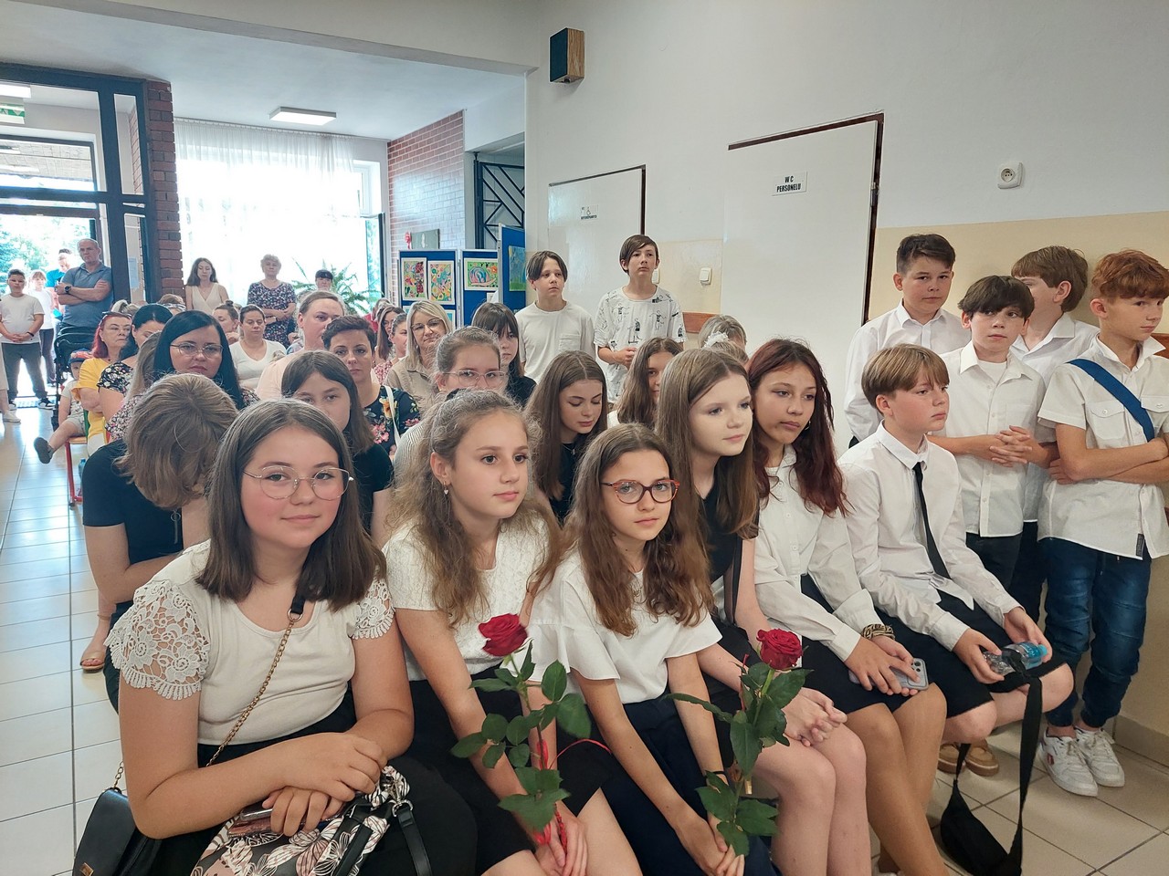 Podczas uroczystości zakończenia roku szkolnego gościliśmy Wójt Gminy Krasnystaw Panią Edytę Gajowiak-Powroźnik, księdza proboszcza Andrzeja Kowalczyka, rodziców i bliskich naszych uczniów.