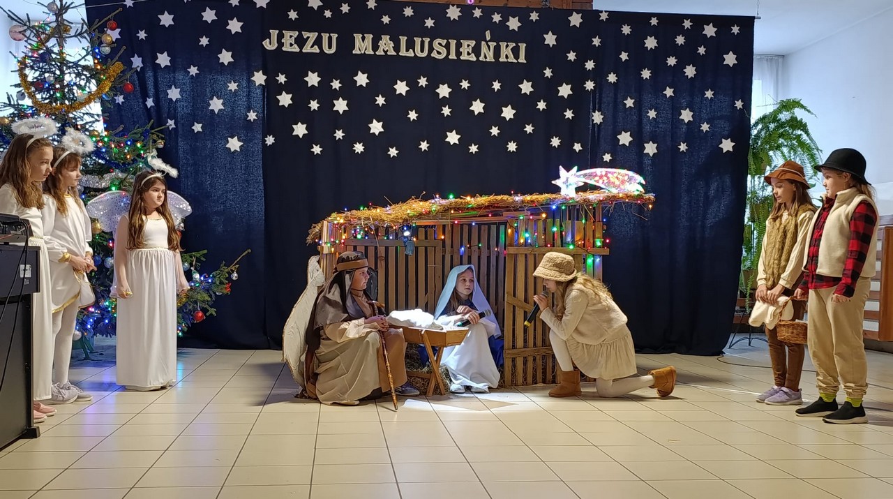 IMG 20251219 WA0018Jak co roku w czasie poprzedzającym Boże Narodzenie uczniowie naszej szkoły wprowadzają świąteczny nastrój w szkolne mury. Odbywają się spotkania opłatkowe, rozchodzi się zapach pierników,  wszędzie wiszą świąteczne dekoracje. W ostatni dzień nauki przed przerwą świąteczną oglądamy jasełka.
