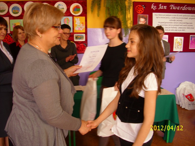 Wszyscy laureaci oraz uczestnicy konkursu zostali nagrodzeni. Dyplomy i nagrody wręczały dyrektor szkoły Pani Małgorzata Policha oraz Pani Anna Rapa z Urzędu Gminy Krasnystaw.