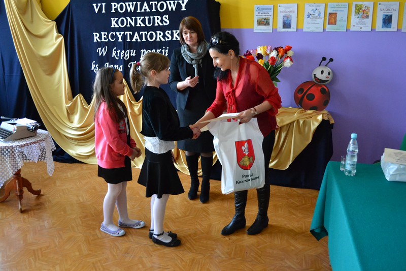 Laureaci z gimnazjum to: Ewa Pędzińska z Krupego, Weronika Gwarda z Gimnazjum Nr 3 w Krasnymstawie oraz Karolina Młynarczyk z Gorzkowa. Jury pod przewodnictwem Pana Andrzeja Woźniaka wyróżniło również trzy recytatorki: Julię Krzyżanowską i Wiktorię Mazurek ze szkół podstawowych w Gorzkowie i Kraśniczynie oraz Barbarę Daniluk z gimnazjum w Krupem. Organizatorzy dziękują wszystkim uczestnikom i nauczycielom za udział w konkursie.