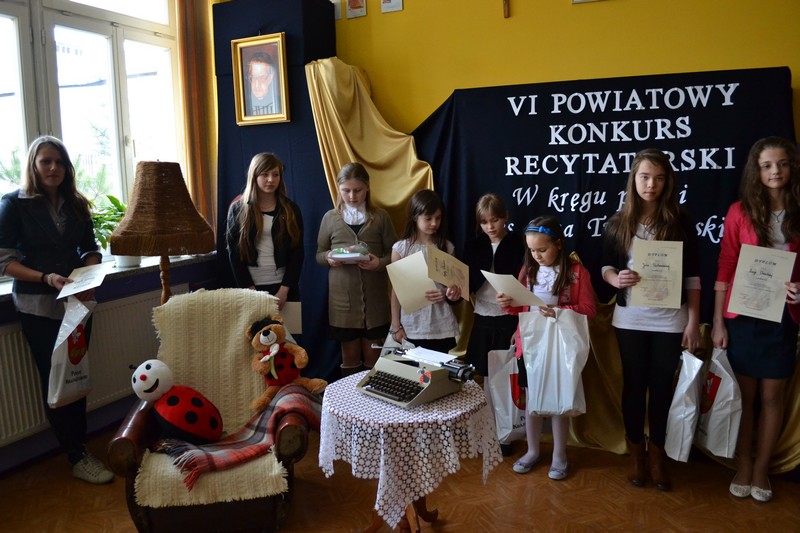 10 kwietnia 2013 r. gościliśmy uczestników VI edycji Powiatowego Konkursu Recytatorskiego „W kręgu poezji ks. Jana Twardowskiego”. W tym roku do udziału w konkursie zgłosiło się 37 recytatorów z klas I – VI szkół podstawowych i I – III gimnazjum. Laureatami w kategorii wiekowej klas I – III szkoły podstawowej zostały: Natalia Syposz z Gorzkowa, Agata Demczuk i Amelia Wach z Siennicy Nadolnej. Tytuł laureatów w grupie wiekowej klas IV – VI przypadł: Łucji Chachaj i Marcie Nowackiej z Siennicy Nadolnej oraz Julii Urbańskiej ze Szkoły Podstawowej Nr 3 w Krasnymstawie.