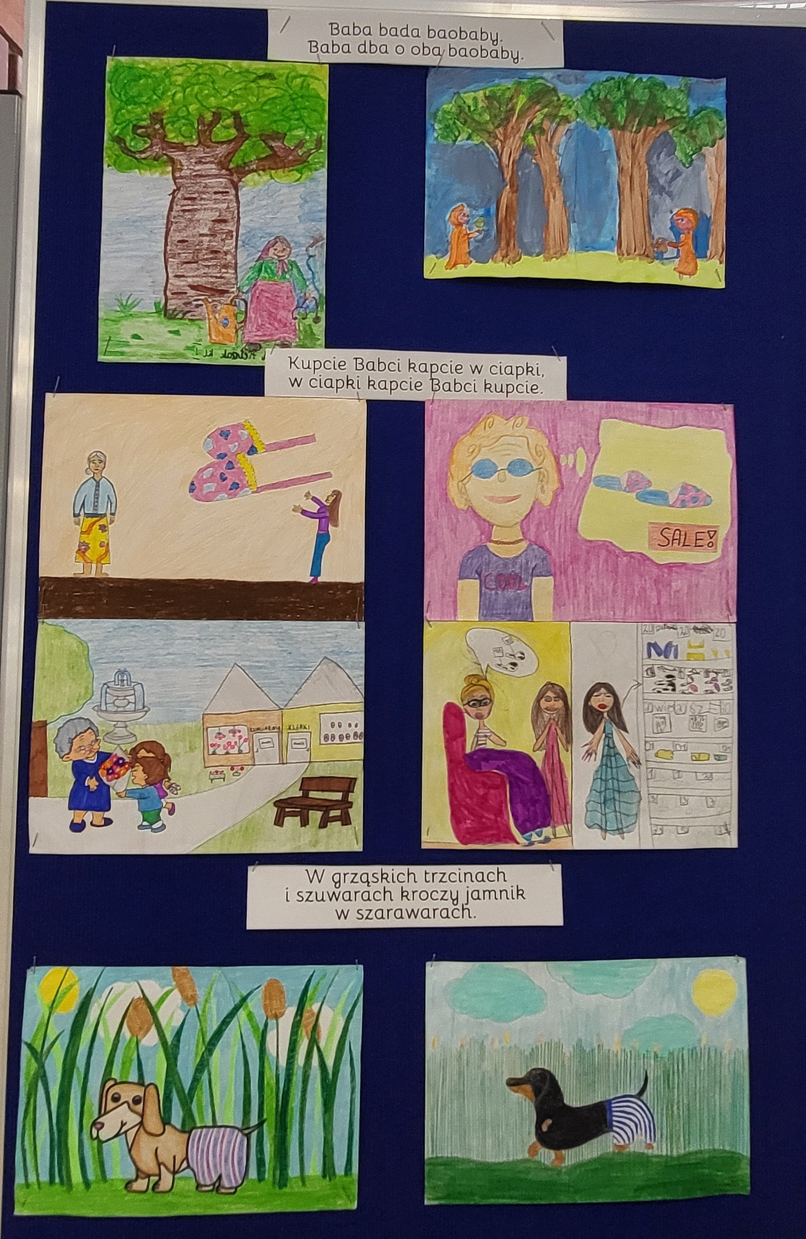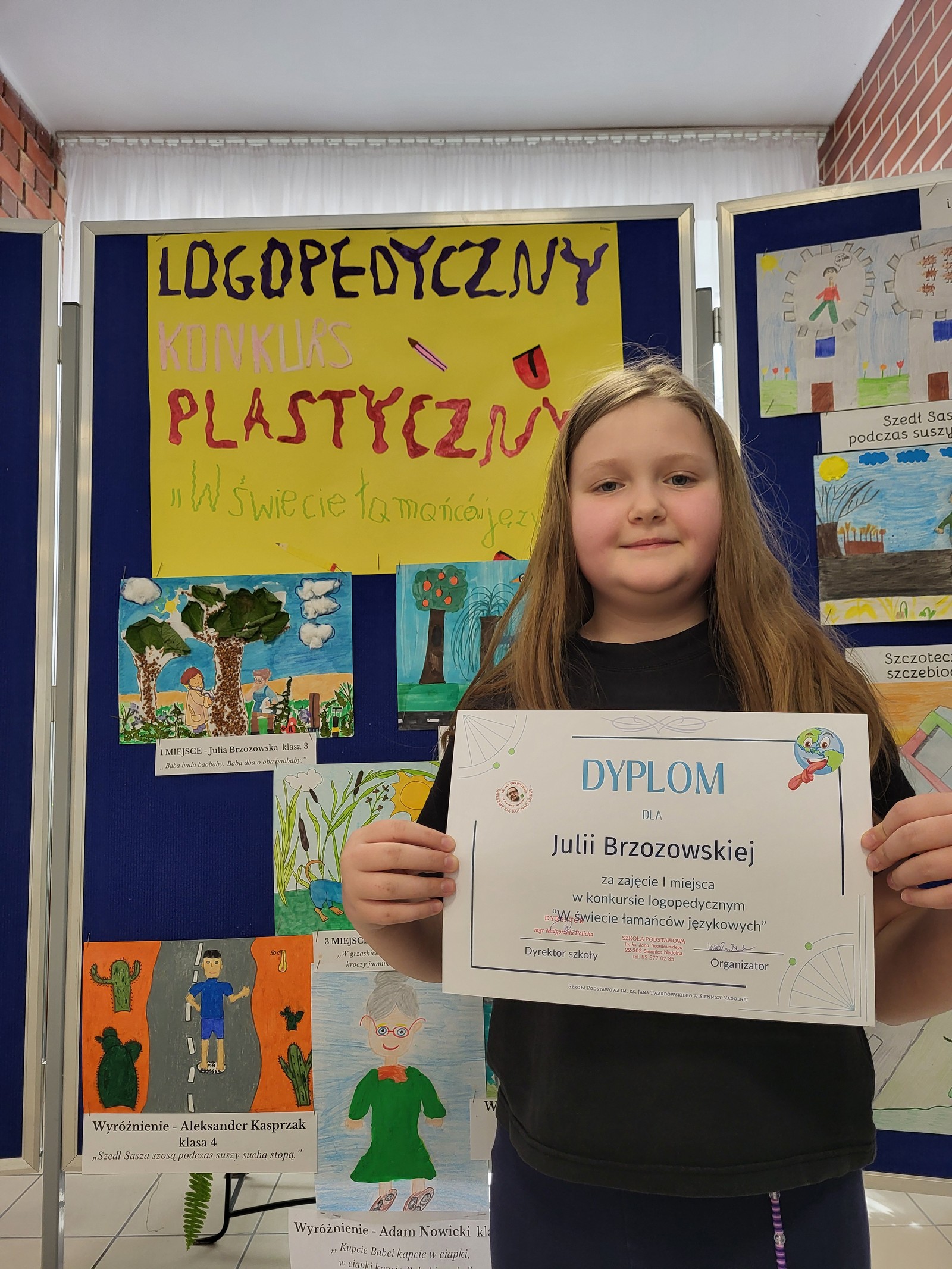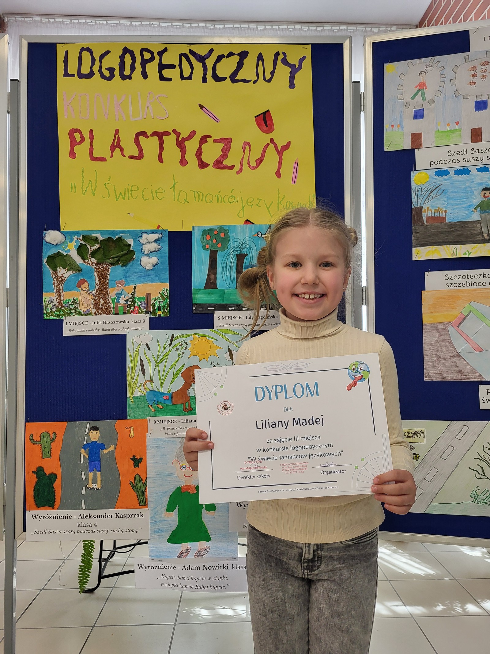W dniach 18 marca - 15 kwietnia 2024 roku w naszej szkole odbył się konkurs logopedyczny „W świecie łamańców językowych”. W zmaganiach konkursowych udział wzięli uczniowie klas I-VIII. Uczestnicy konkursu przedstawili wybrane łamańce językowe w postaci prac plastycznych, które poddane zostały ocenie jury. W wyniku obrad wyłoniono zwycięskie prace, które należą do następujących uczniów:
