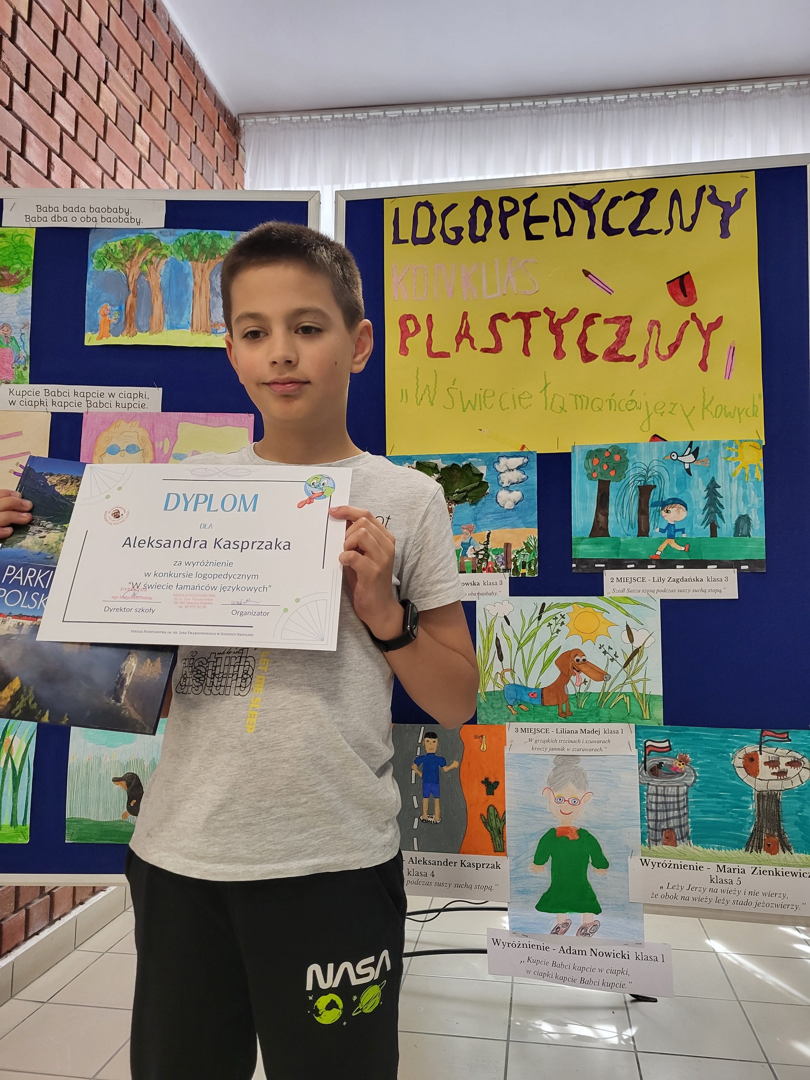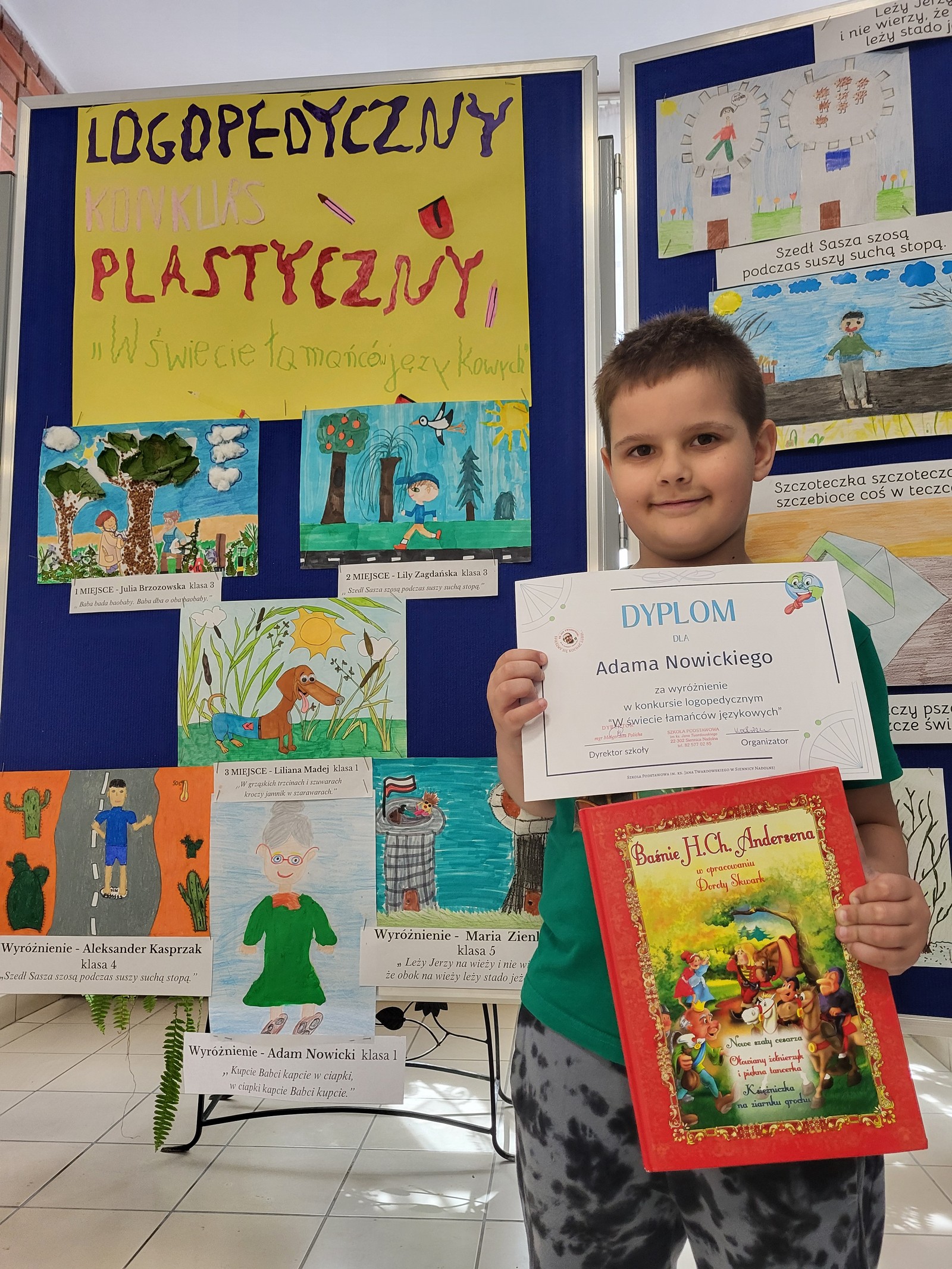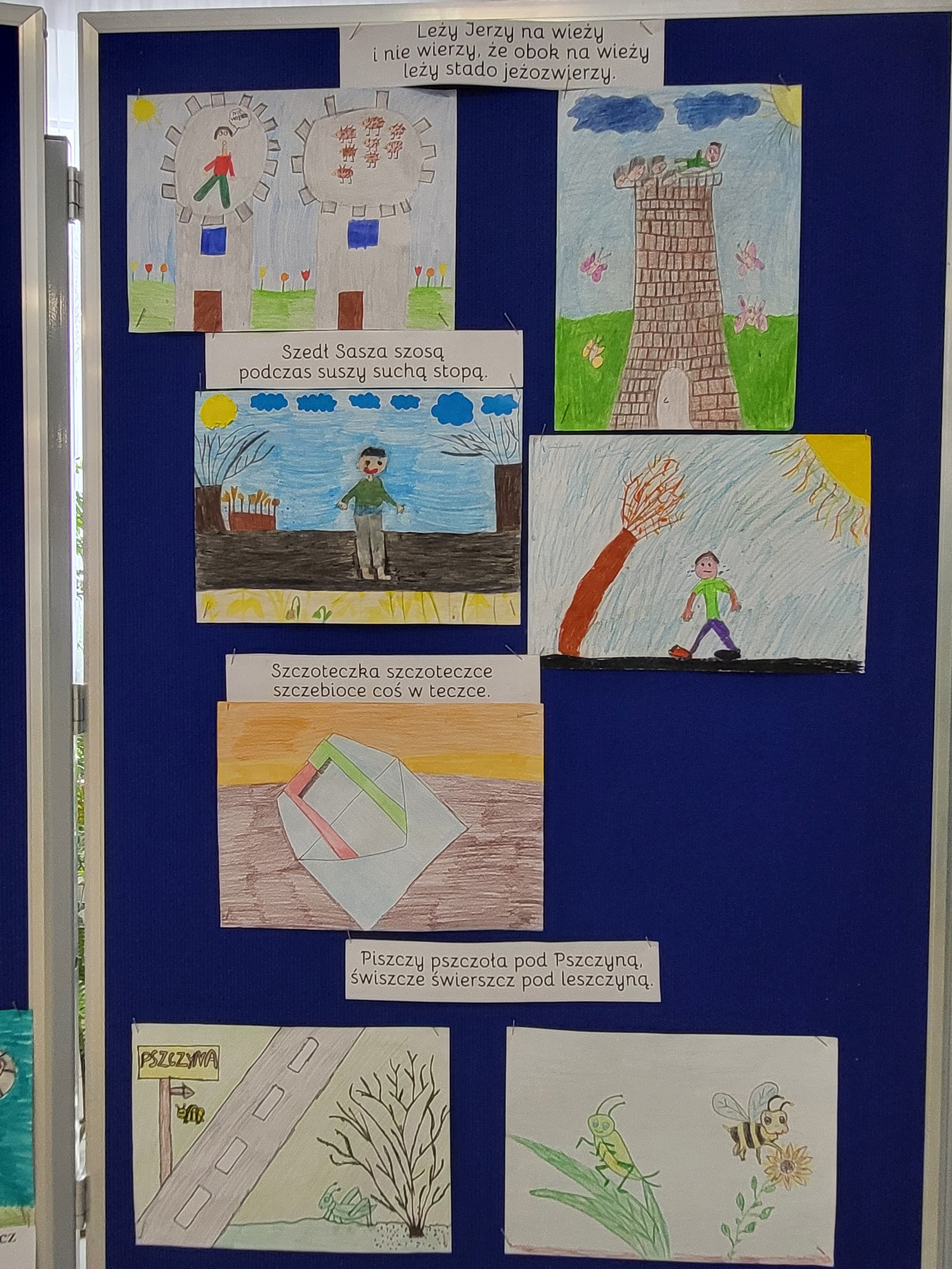 W dniach 18 marca - 15 kwietnia 2024 roku w naszej szkole odbył się konkurs logopedyczny „W świecie łamańców językowych”. W zmaganiach konkursowych udział wzięli uczniowie klas I-VIII. Uczestnicy konkursu przedstawili wybrane łamańce językowe w postaci prac plastycznych, które poddane zostały ocenie jury. W wyniku obrad wyłoniono zwycięskie prace, które należą do następujących uczniów: