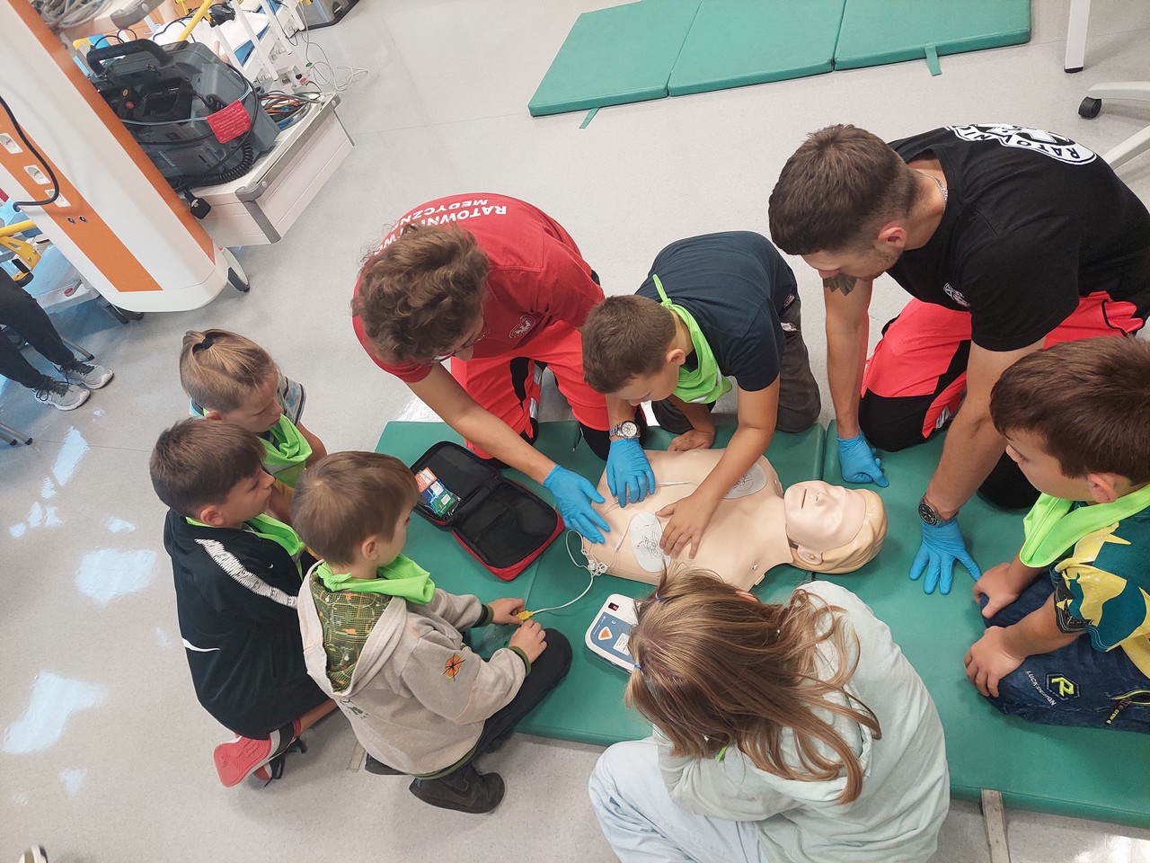 19 września 2023 roku uczniowie klasy IV brali udział w warsztatach zorganizowanych w Szpitalnym Oddziale Ratunkowym w Centrum Symulacji Medycznej Uniwersytetu Medycznego w Lublinie. Zobaczyli w jakich świetnych warunkach szkolą się studenci. Obejrzeli nowoczesny sprzęt symulacyjny. Poznali instrukcję obsługi i poćwiczyli użycie defibrylatora. Na fantomie przećwiczyli zasady udzielania pierwszej pomocy oraz dowiedzieli się, jak muszą postąpić w przypadku zadławienia. Wielką atrakcją było też zapoznanie się z wnętrzem i wyposażeniem prawdziwej karetki pogotowia.