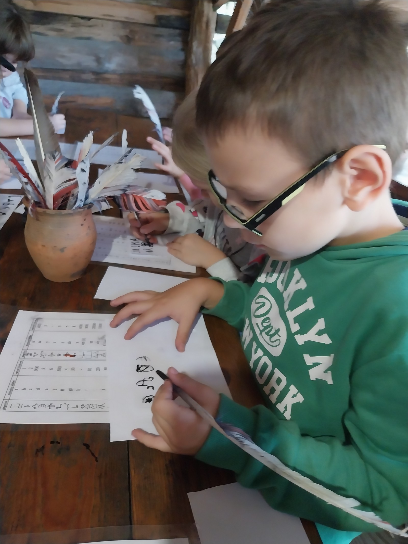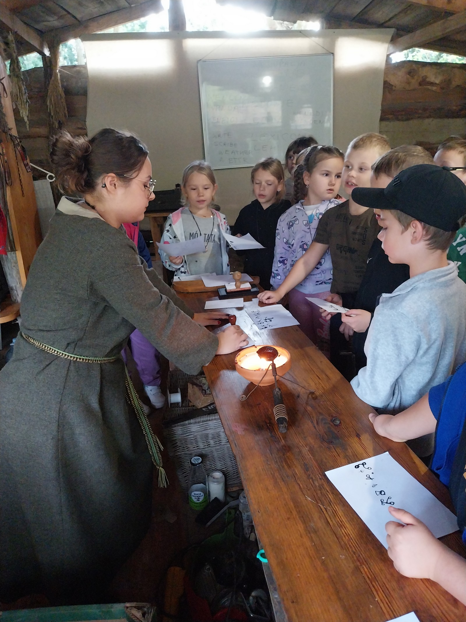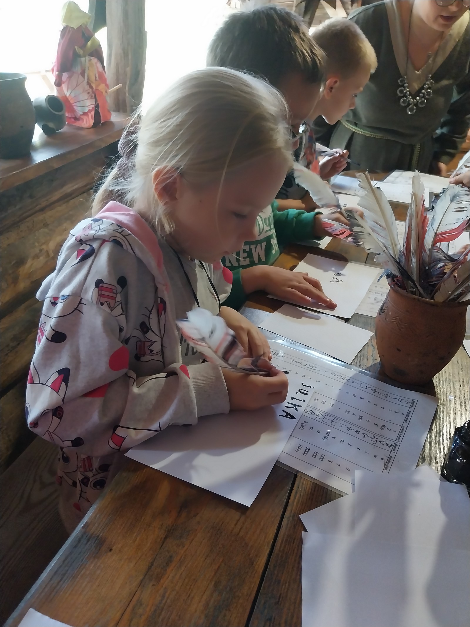 Dzieci zdobywały unikalne, niecodzienne umiejętności, dzisiaj już zapomniane, a w dawnych czasach niezbędne. Zdobywały wiedzę o pradawnym piśmie – głagolicy. Poznawały znaki pisma i uczyły się zapisywać tymi znakami swoje imiona. Zobaczyły jak lakowano korespondencję i przystawiano pieczęcie. Zdobywały umiejętności łuczników - obrońców grodu. Przekonały się na własnej skórze jak ciężko było walczyć w obronie grodu. Pierwszoklasiści zakładali hełmy, dźwigali ciężkie tarcze i miecze. Strzelali z łuku do tarczy oraz ziemniakami z wielkiej procy.  Mieli okazję zobaczyć jak w dawnych czasach wybijano monety. Poznali tajniki słowiańskiego tańca i świetnie bawili się na słowiańskiej dyskotece.  Chętnie słuchali ciekawych opowieści o dawnych wierzeniach, przypowieści o życiu i troskach Słowian.