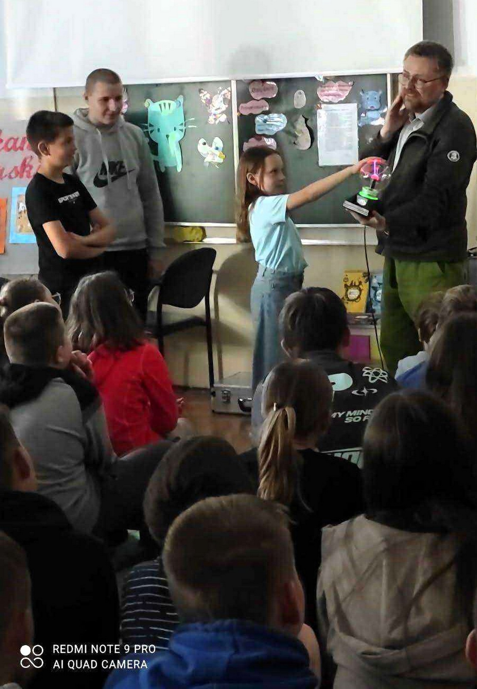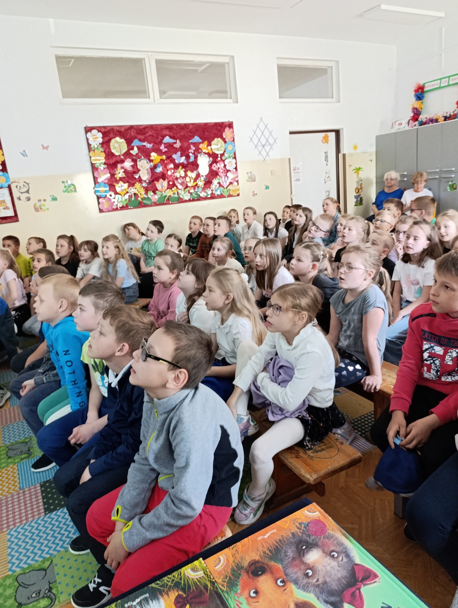 Wszyscy z wielkim zainteresowaniem słuchali barwnych opowieści autora o bohaterach i ich przygodach, przenosząc się w fascynujący świat literatury. Spotkanie autorskie przebiegało w radosnej atmosferze. Na pewno na długo pozostanie w pamięci uczniów naszej szkoły, którzy chętnie ustawiali się do wspólnych zdjęć z pisarzem. Podziękowaniem dla pana Marcina były związane z regionem upominki , które przekazał Urząd Miasta Krasnystaw.